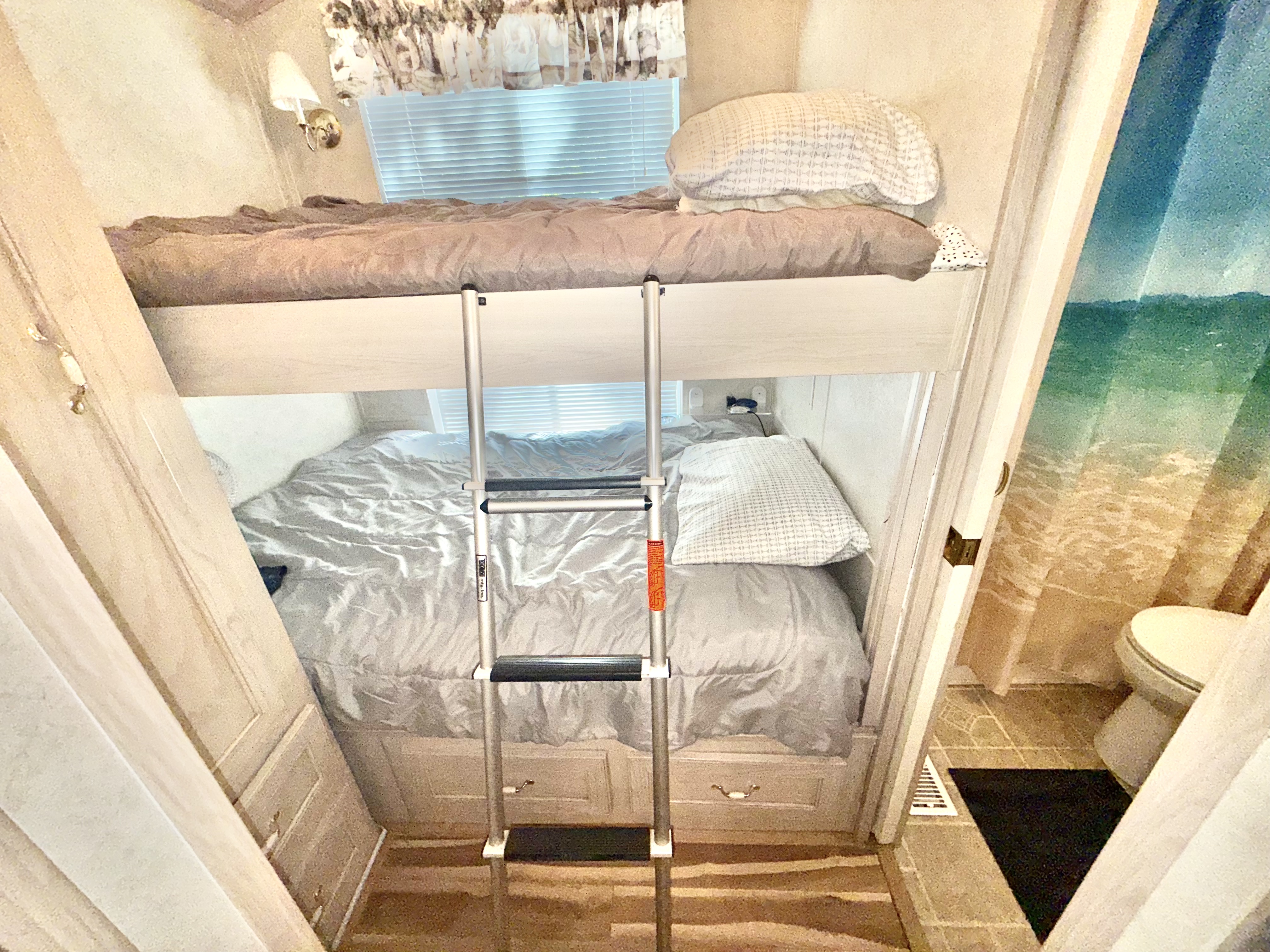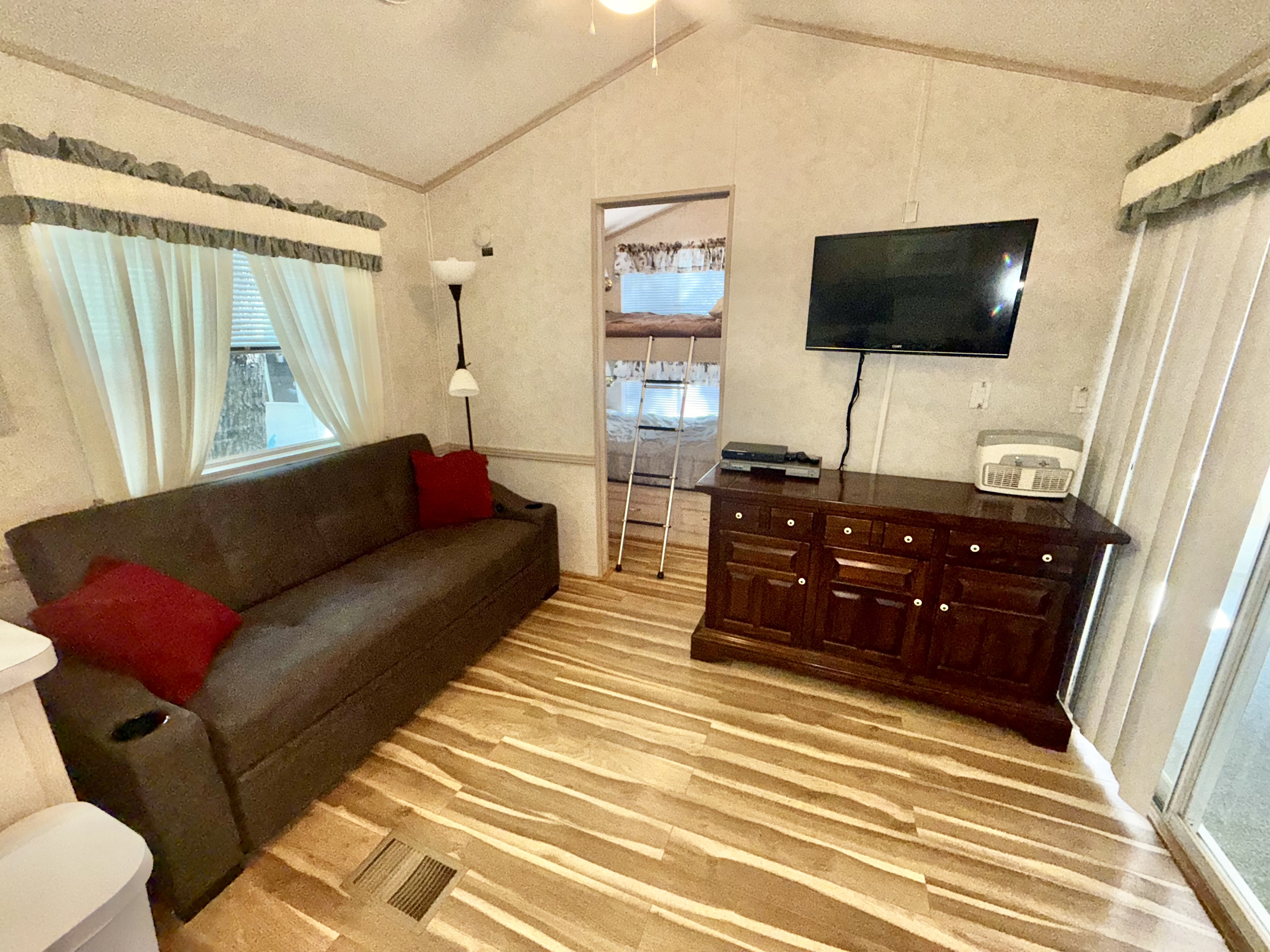 • 2 bedrooms: rear queen bedroom & front bunks