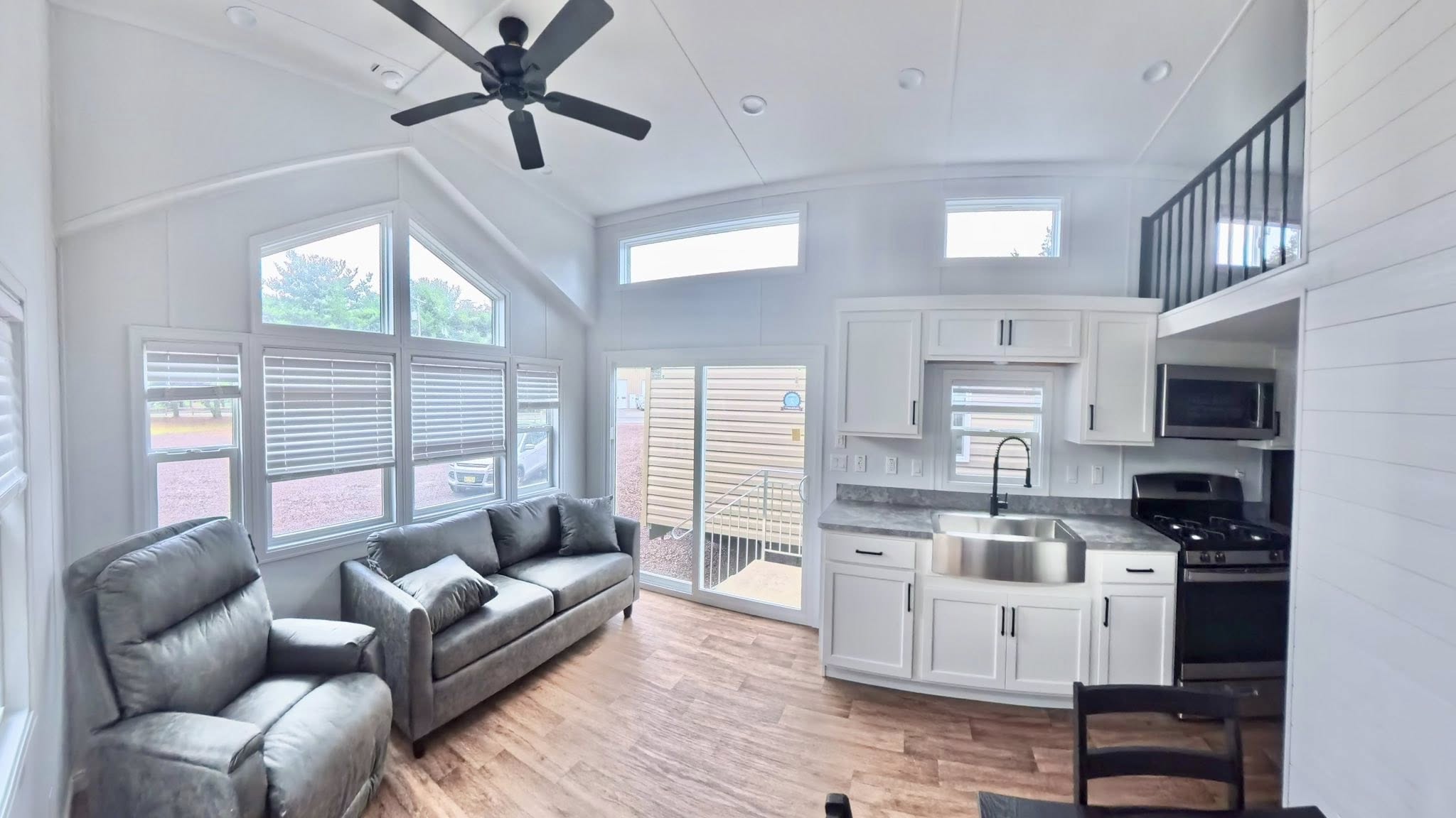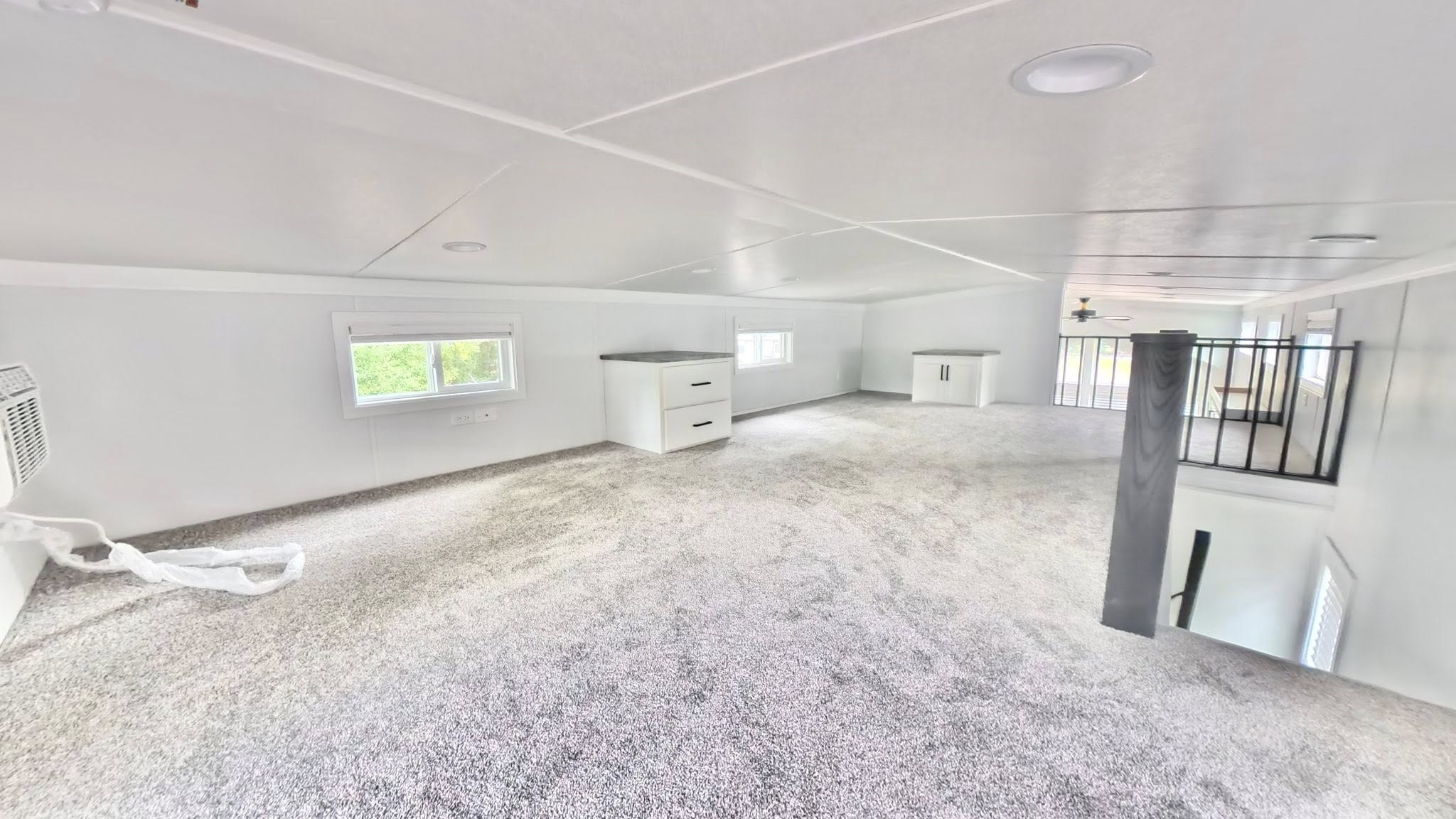 • Full loft area with carpeting, windows, & railing