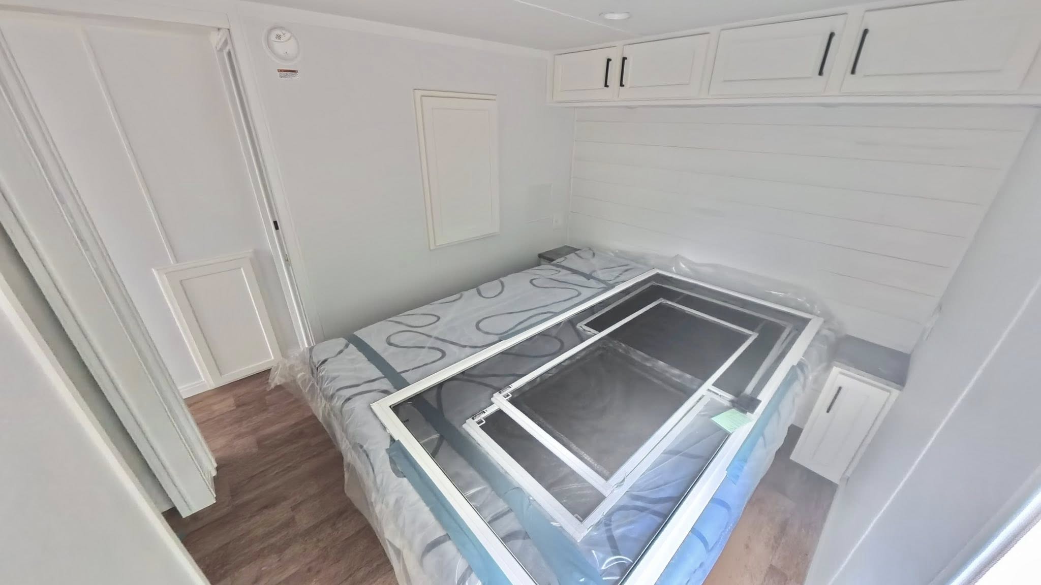 • Second bedroom with a full-size bed & overhead cabinets